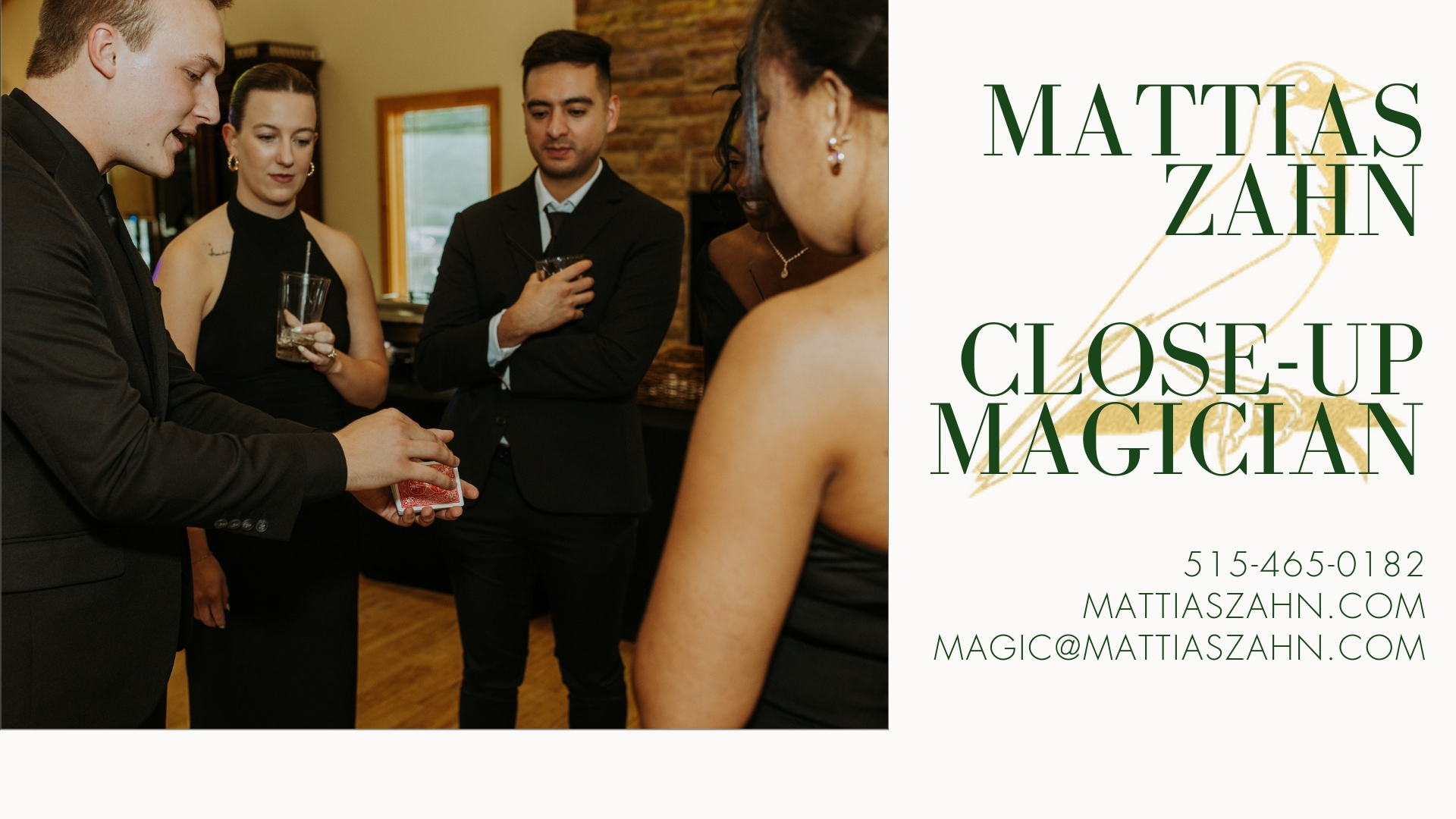 Located in Urbandale, Mattias has brought his magic to companies, parties, and weddings all over the Midwest.